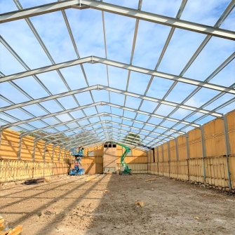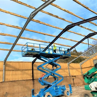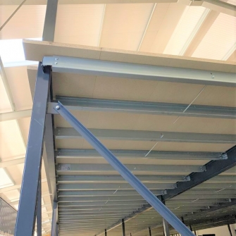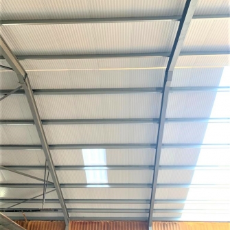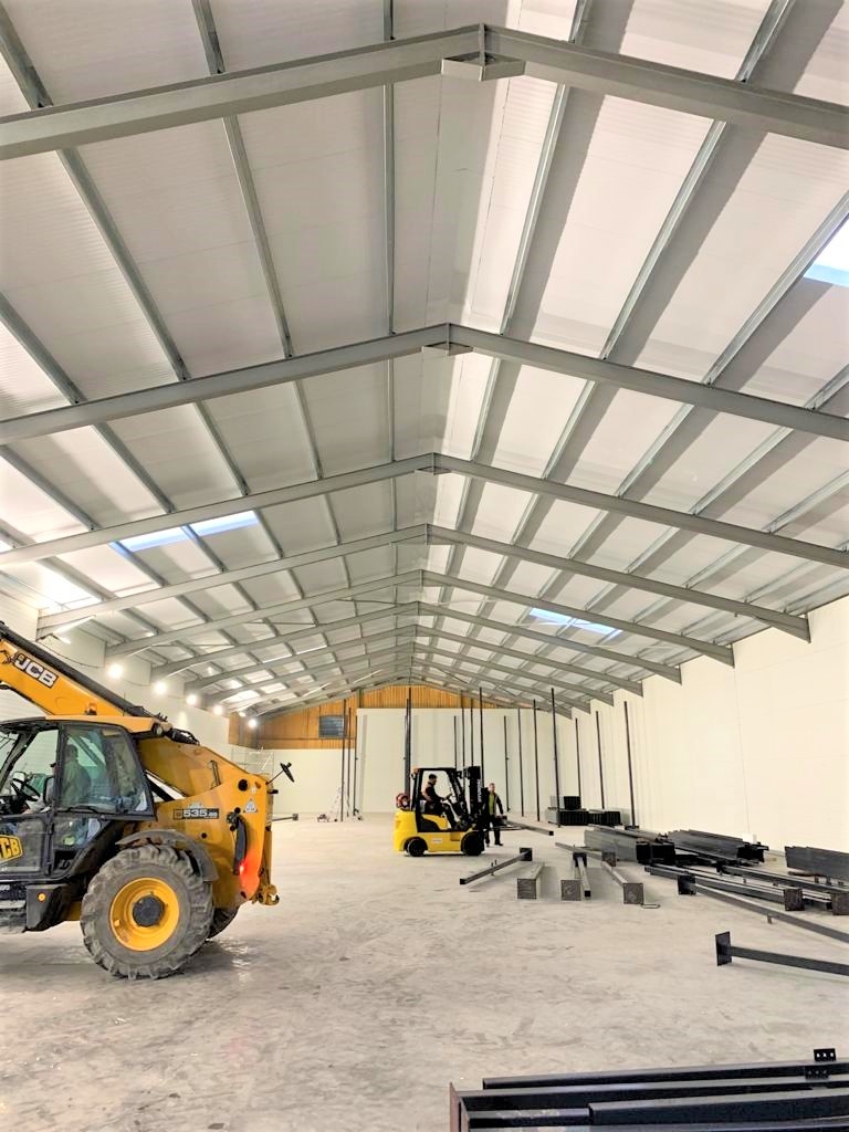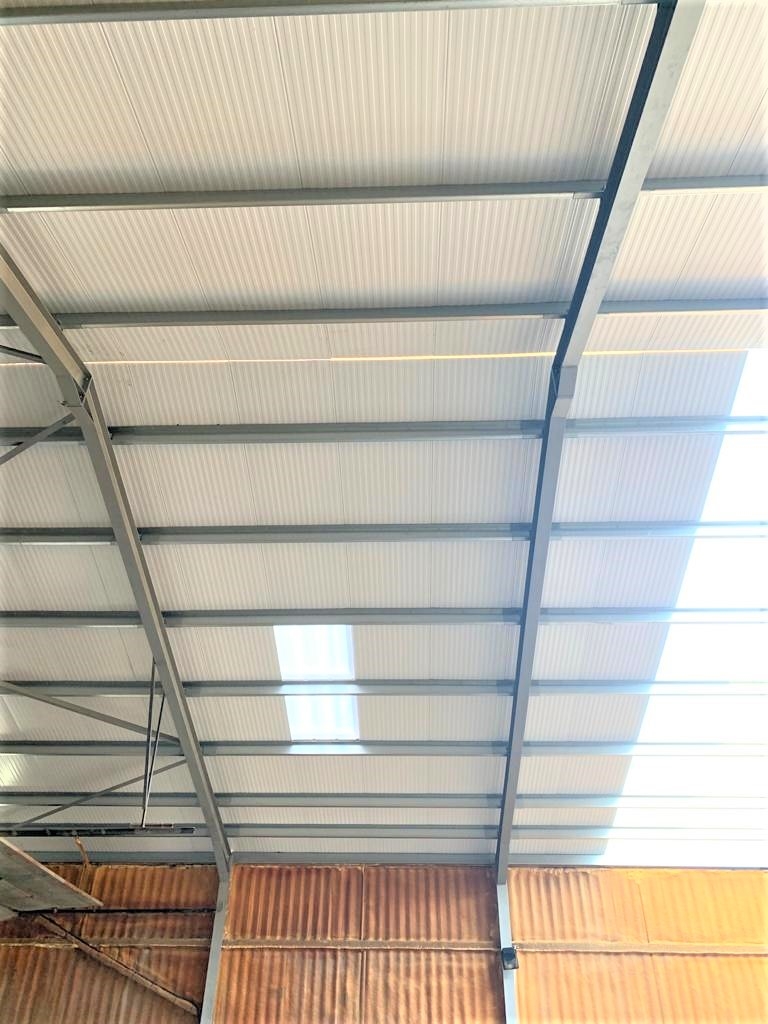 Roof demolition; Steel beams reconstruction; Steel construction paint recovery; Roof sandwich panel installation; Flashing and guttering; Industrial floor concreting. Contract for Design, Supply, Installation.