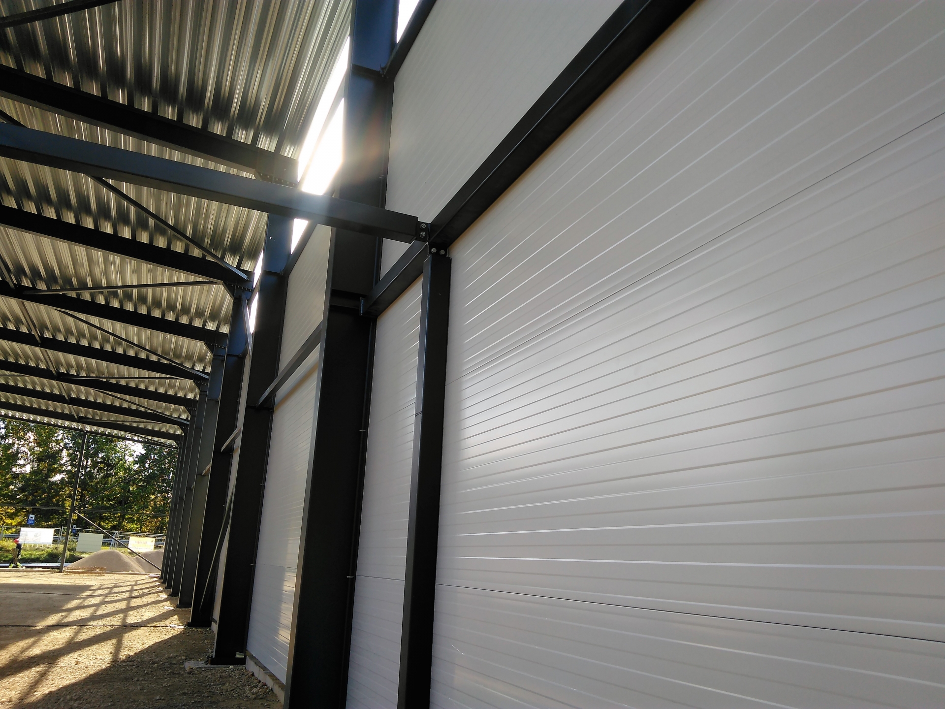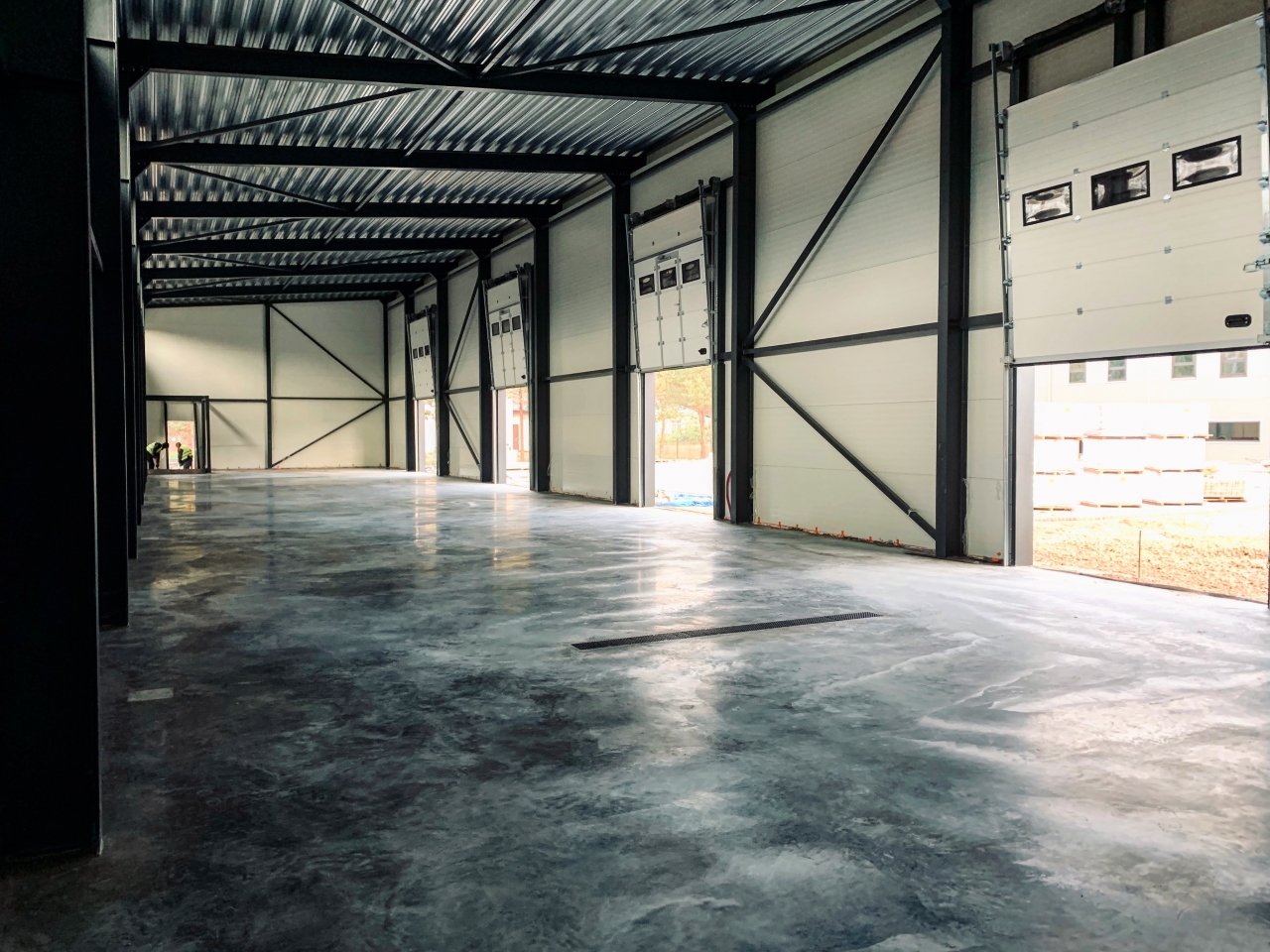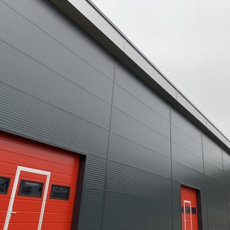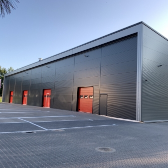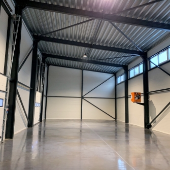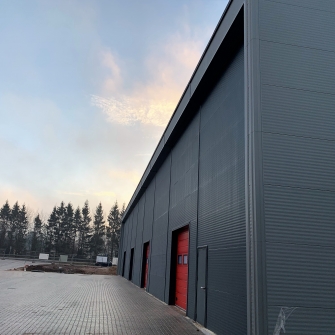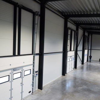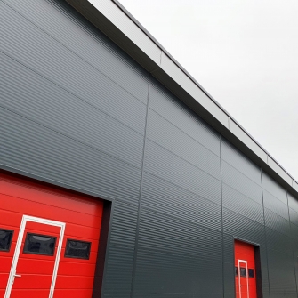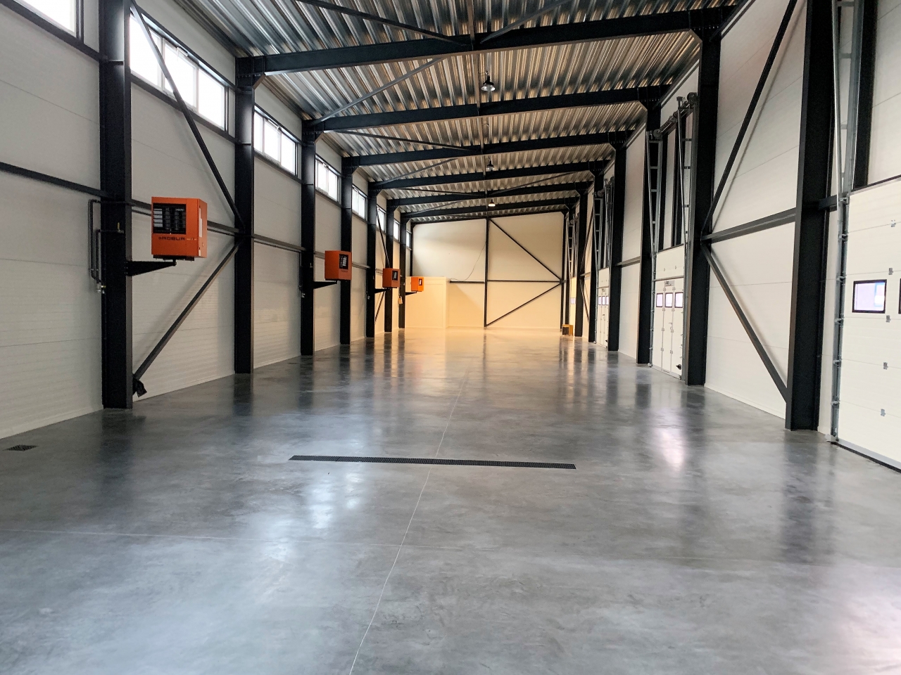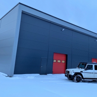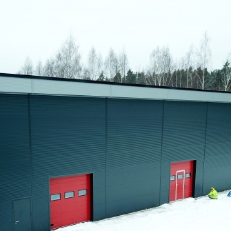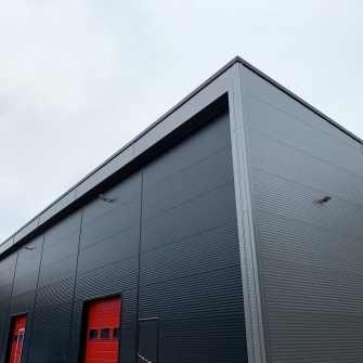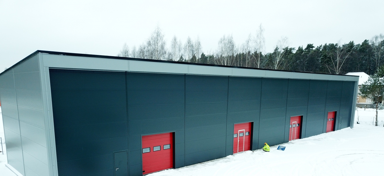 Industrial steel buildings covered with special insulated panels PIR 120 mm with secret fix form Austria. This sandwich panels finishes guarantee the highest possible level of heat and acoustic insulation from the outside, making the structure not only an ideal area for the storage of goods but also a useful work area.