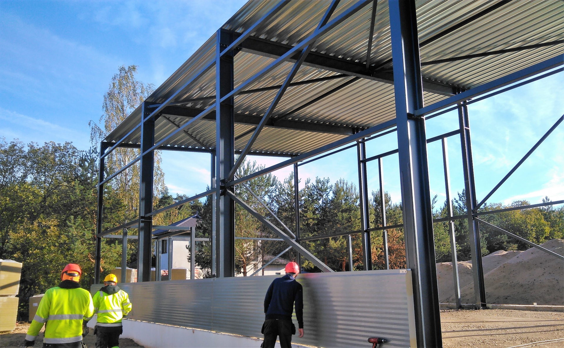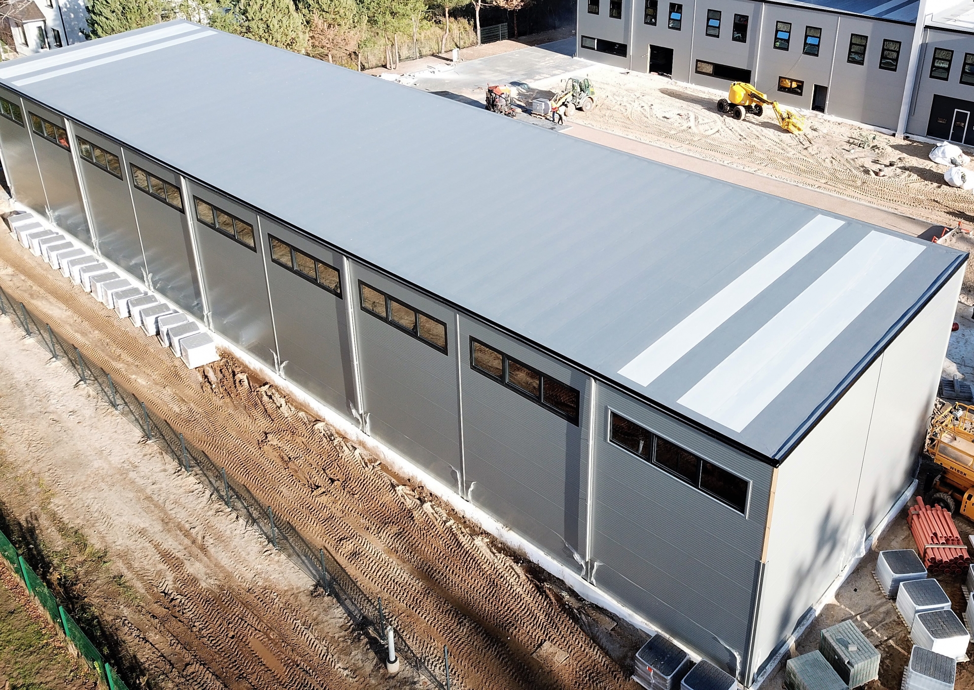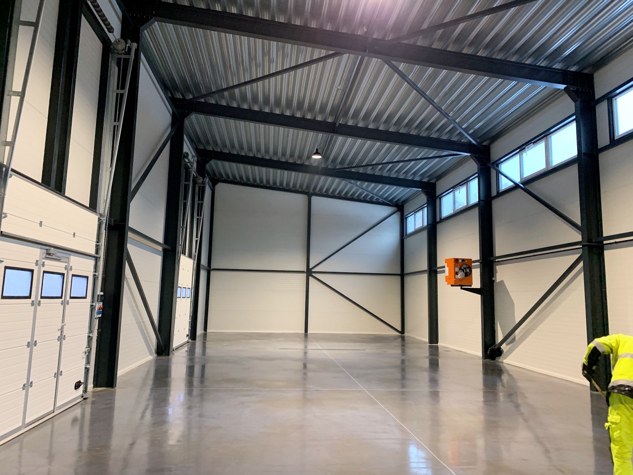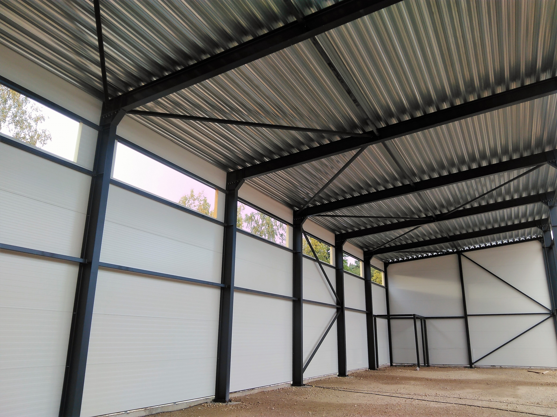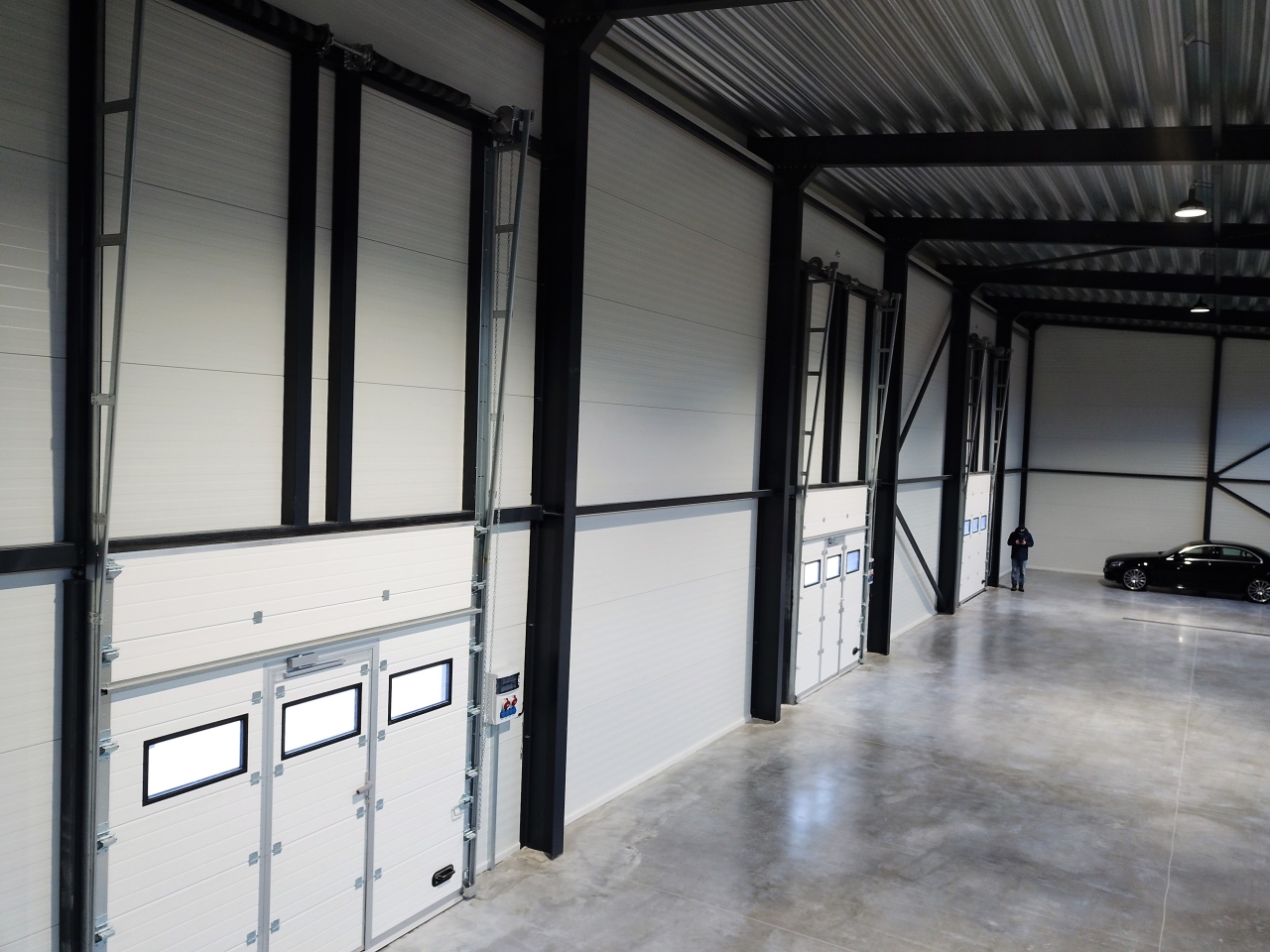 Industrial steel buildings covered with special insulated panels PIR 120 mm with secret fix form Austria. This sandwich panels finishes guarantee the highest possible level of heat and acoustic insulation from the outside, making the structure not only an ideal area for the storage of goods but also a useful work area.