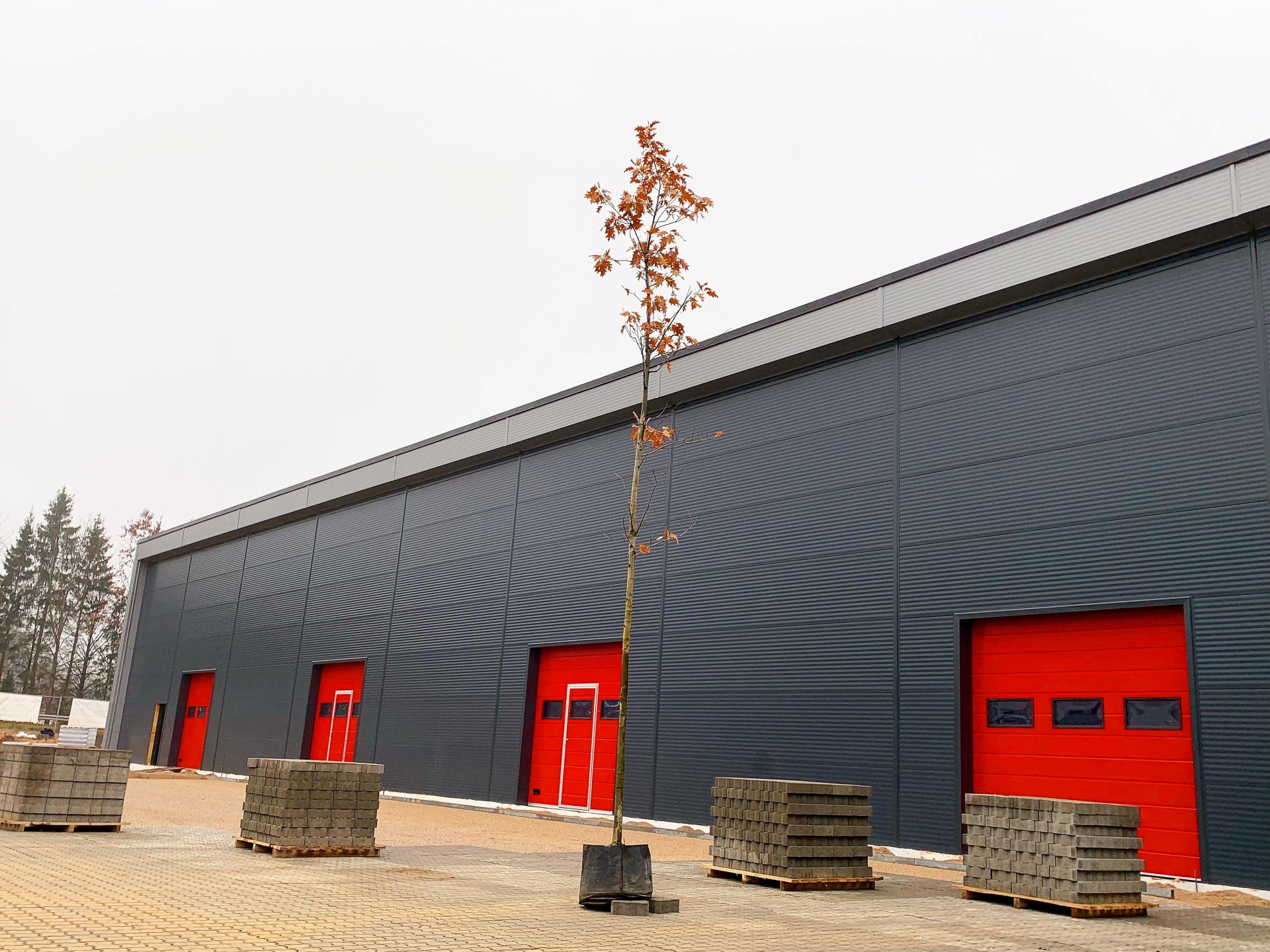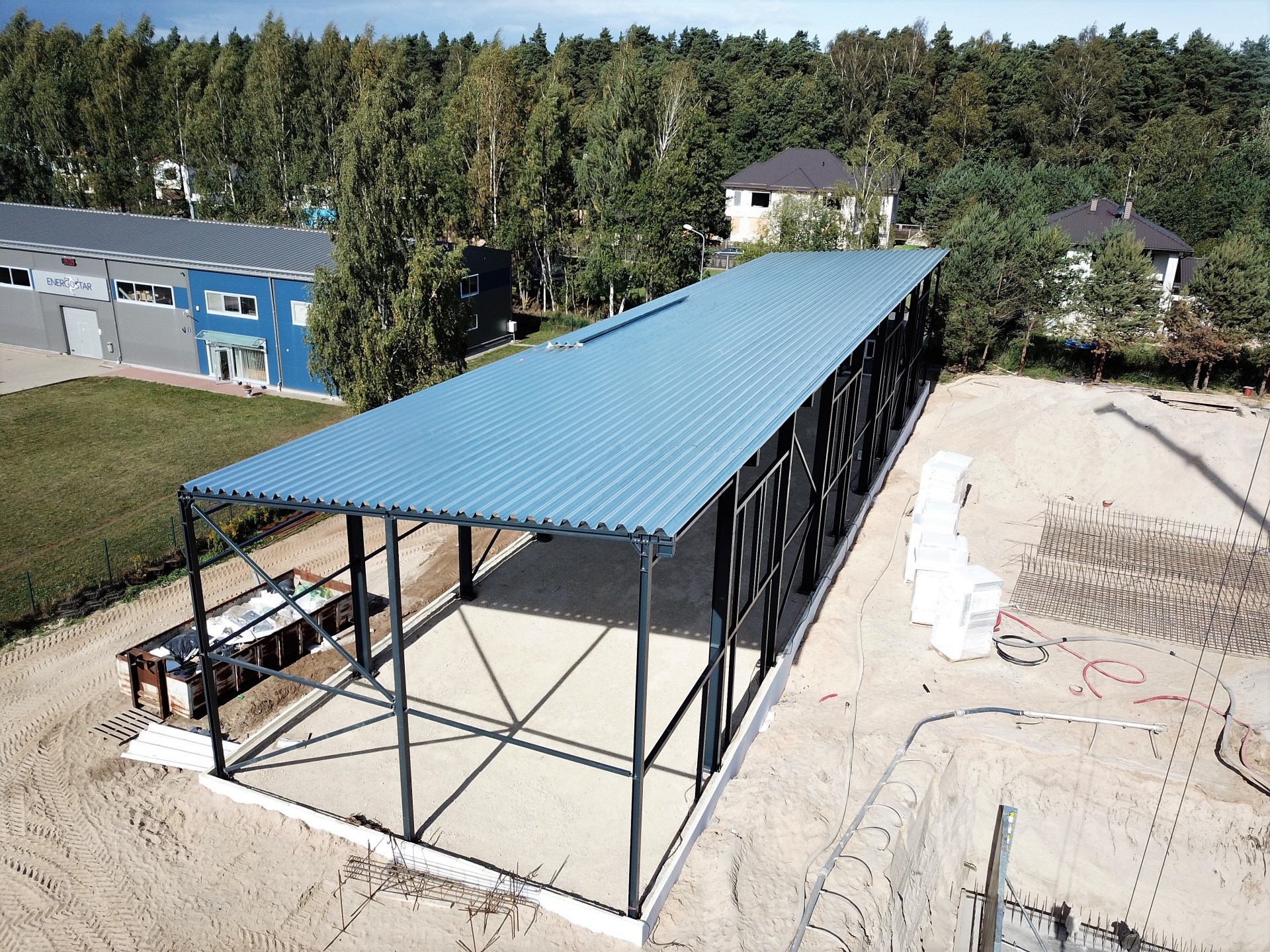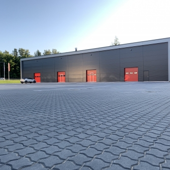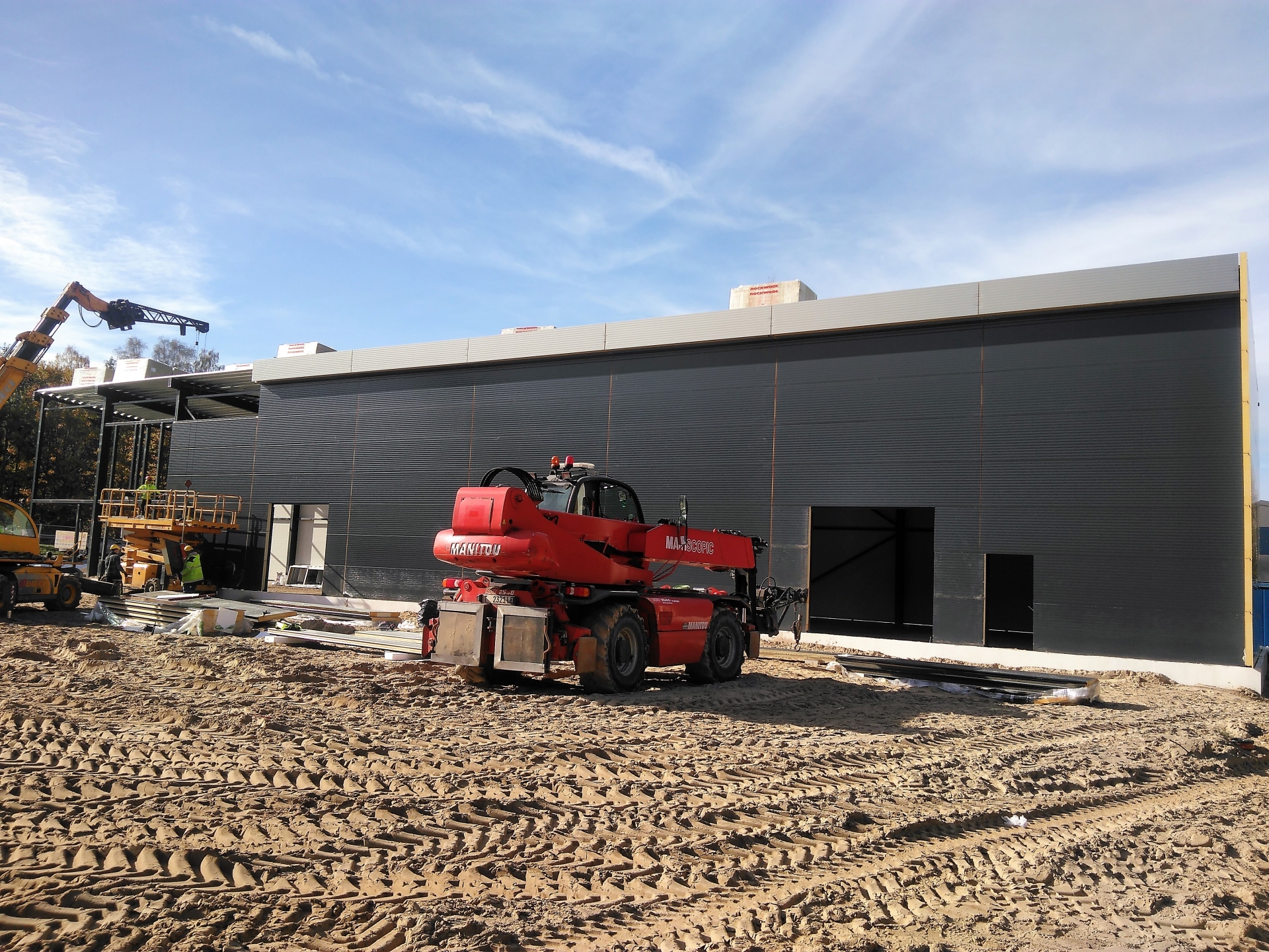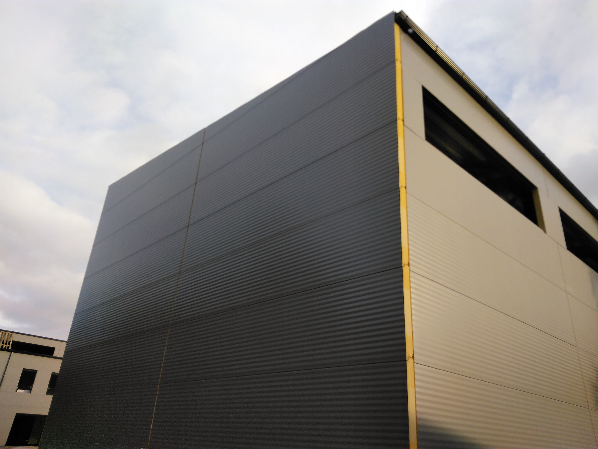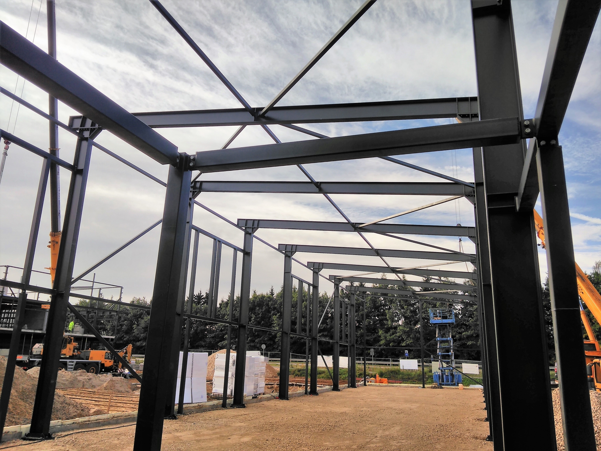 Industrial steel buildings covered with special insulated panels PIR 120 mm with secret fix form Austria. This sandwich panels finishes guarantee the highest possible level of heat and acoustic insulation from the outside, making the structure not only an ideal area for the storage of goods but also a useful work area.