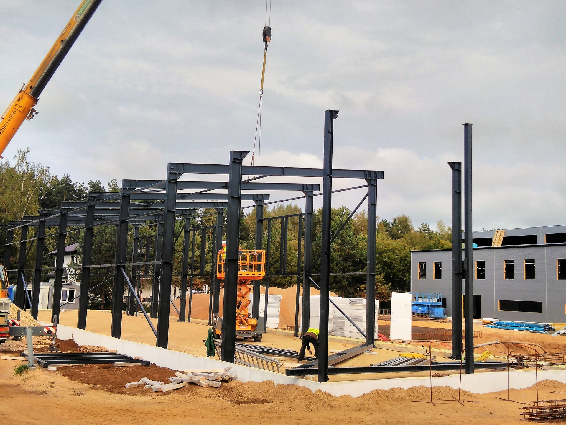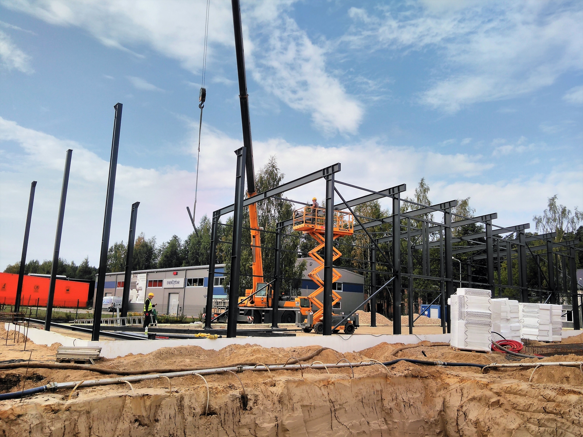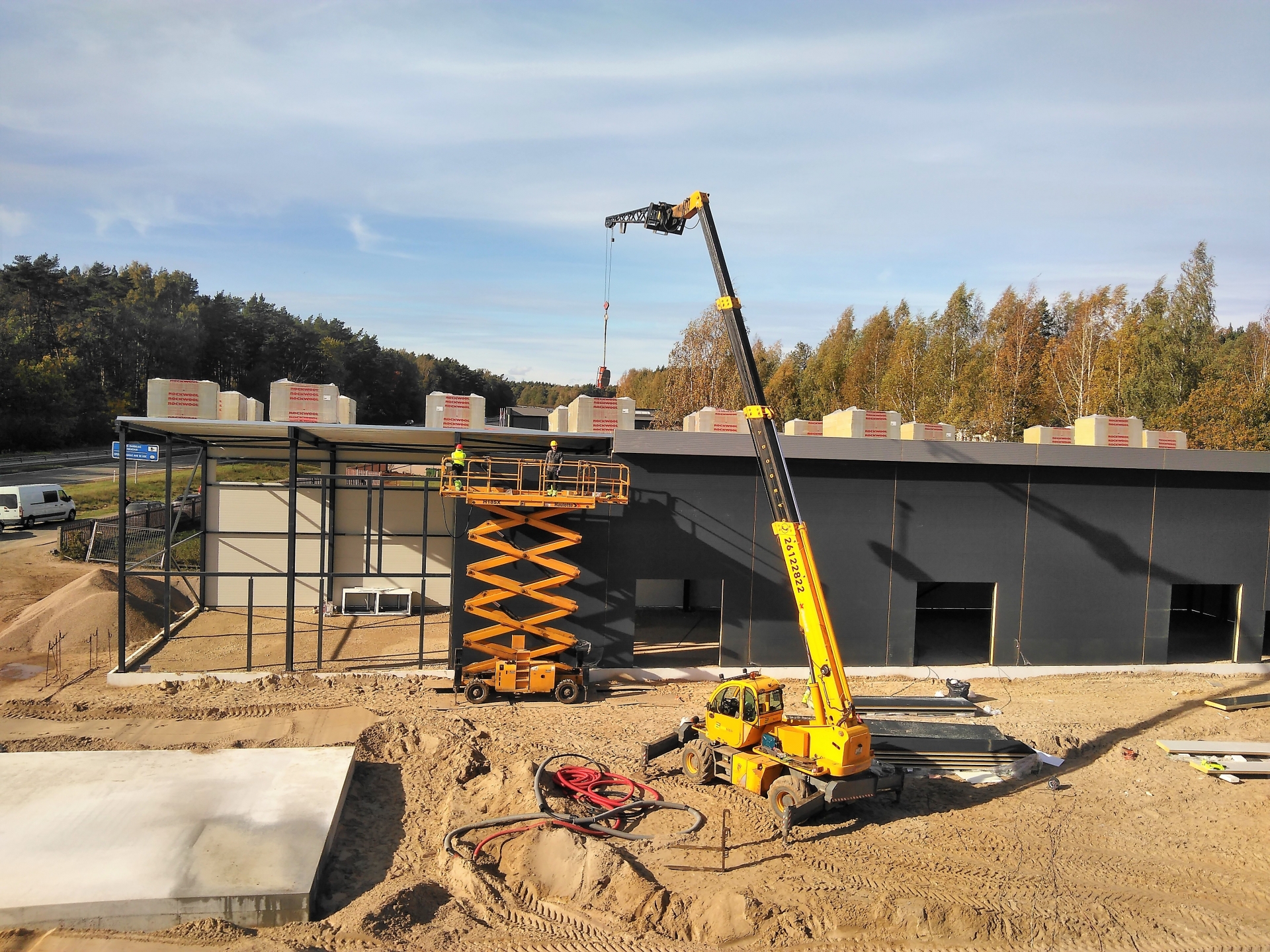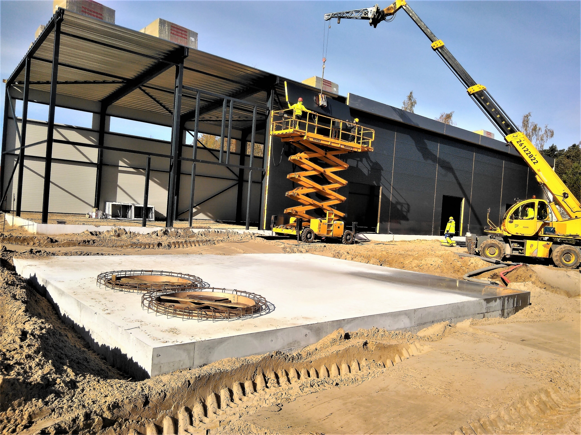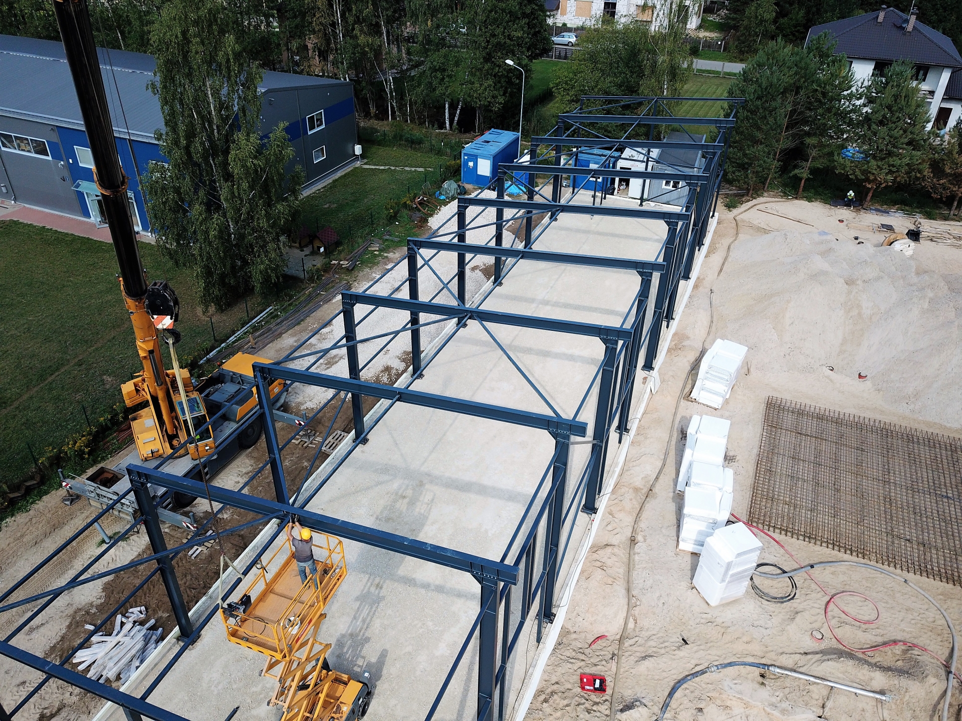 Industrial steel buildings covered with special insulated panels PIR 120 mm with secret fix form Austria. This sandwich panels finishes guarantee the highest possible level of heat and acoustic insulation from the outside, making the structure not only an ideal area for the storage of goods but also a useful work area.