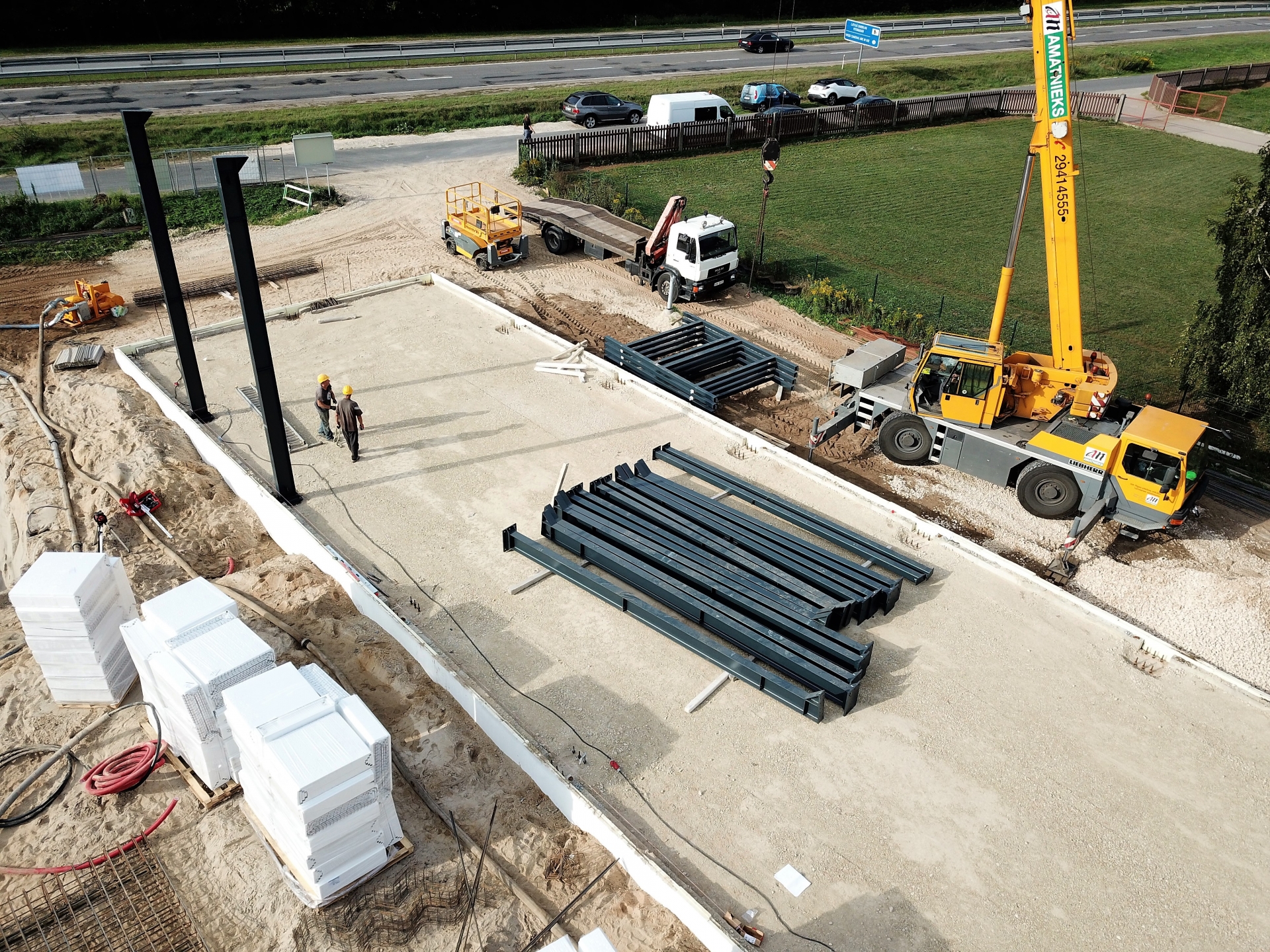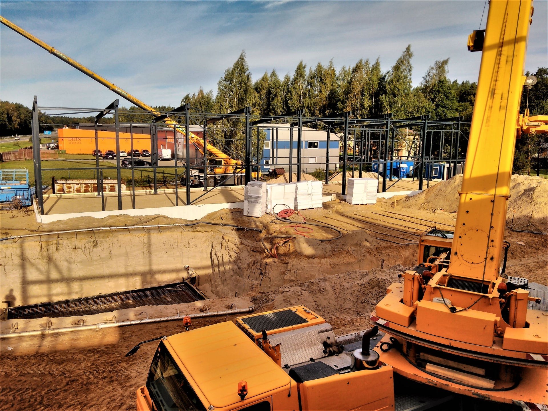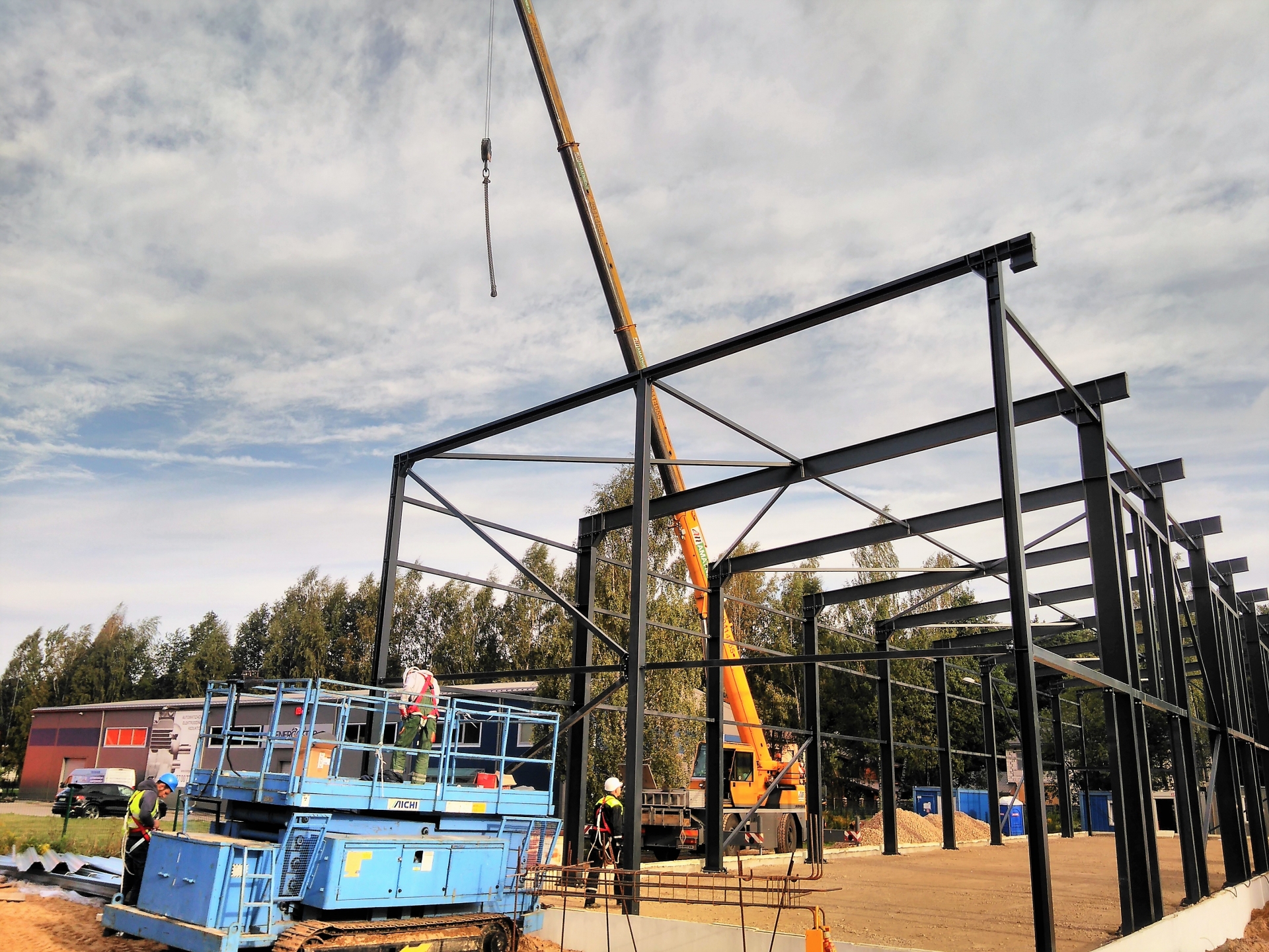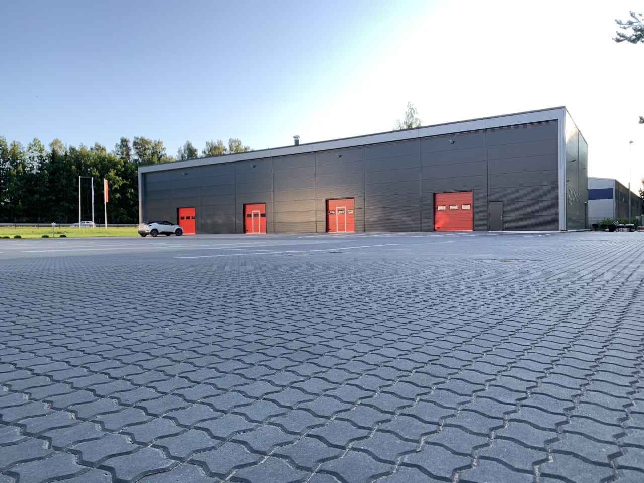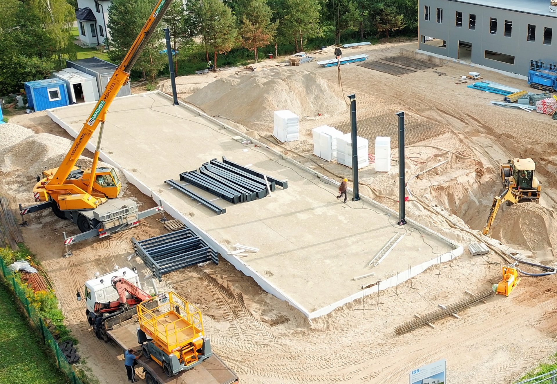 Industrial steel buildings covered with special insulated panels PIR 120 mm with secret fix form Austria. This sandwich panels finishes guarantee the highest possible level of heat and acoustic insulation from the outside, making the structure not only an ideal area for the storage of goods but also a useful work area.